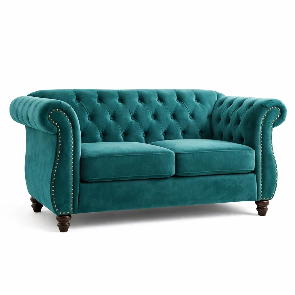 Divano in Velluto Verde con Bottoni e Borchie