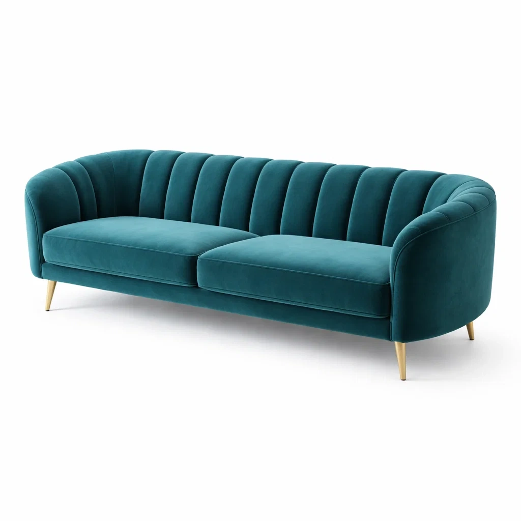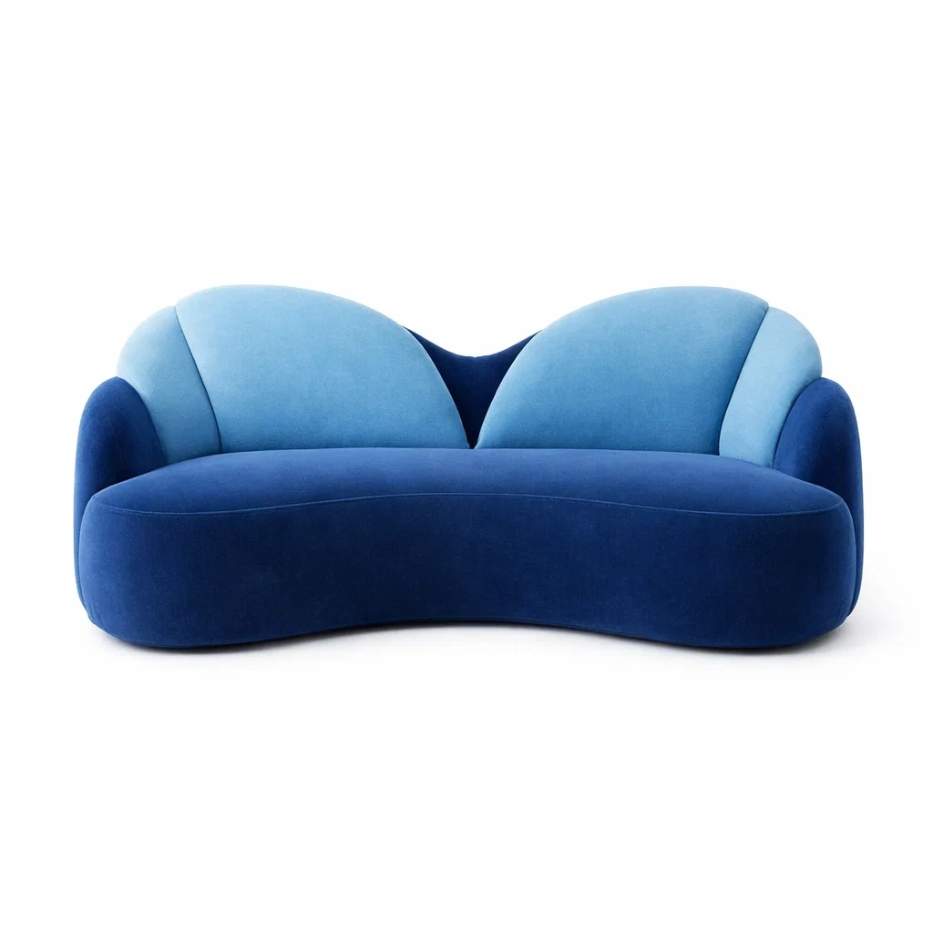 Divano Curvo in Velluto Blu e Azzurro