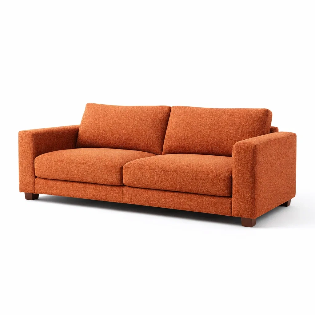 Divano a 3 Posti in Tessuto di Poliestere con Gambe in Legno di Faggio