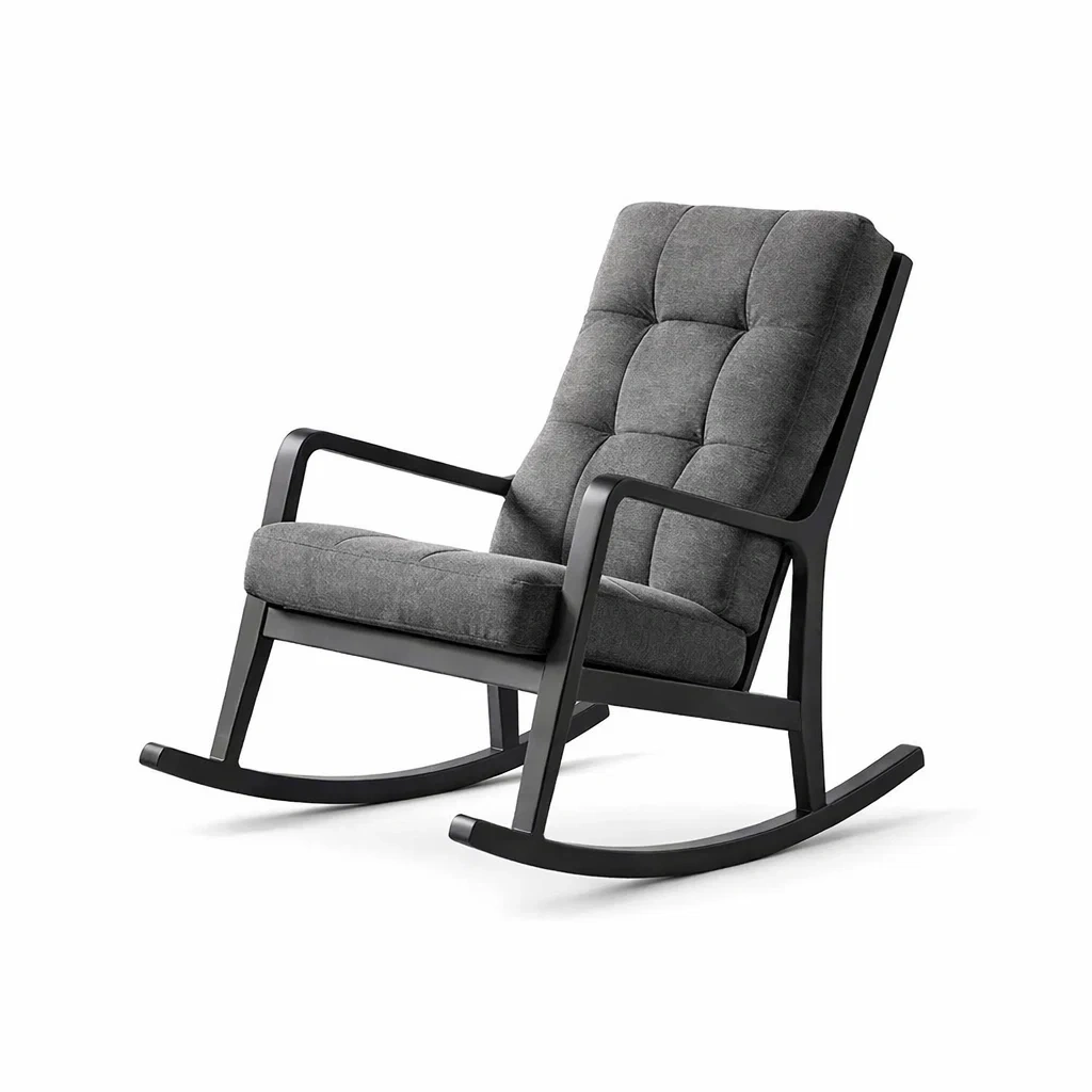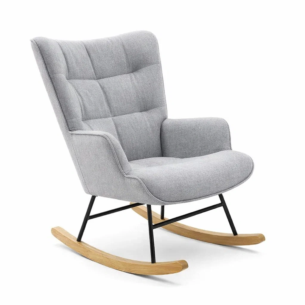 Sedia a dondolo in Legno di Quercia con Tessuto Grigio