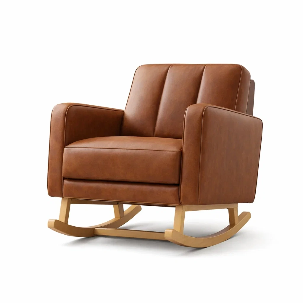 Sedia a dondolo in Pelle Sintetica Marrone con Struttura in Legno