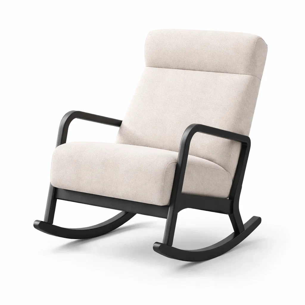 Sedia a dondolo in Legno con Rivestimento in Lino Beige