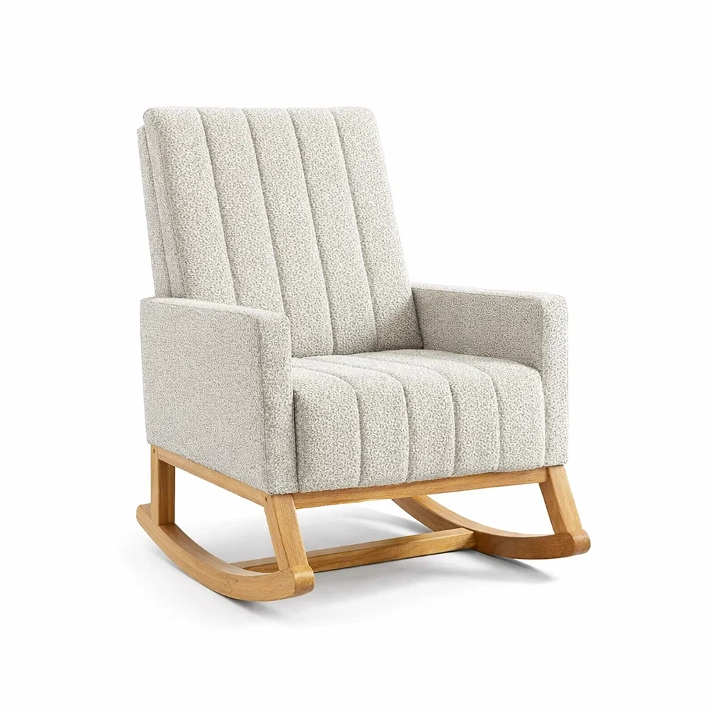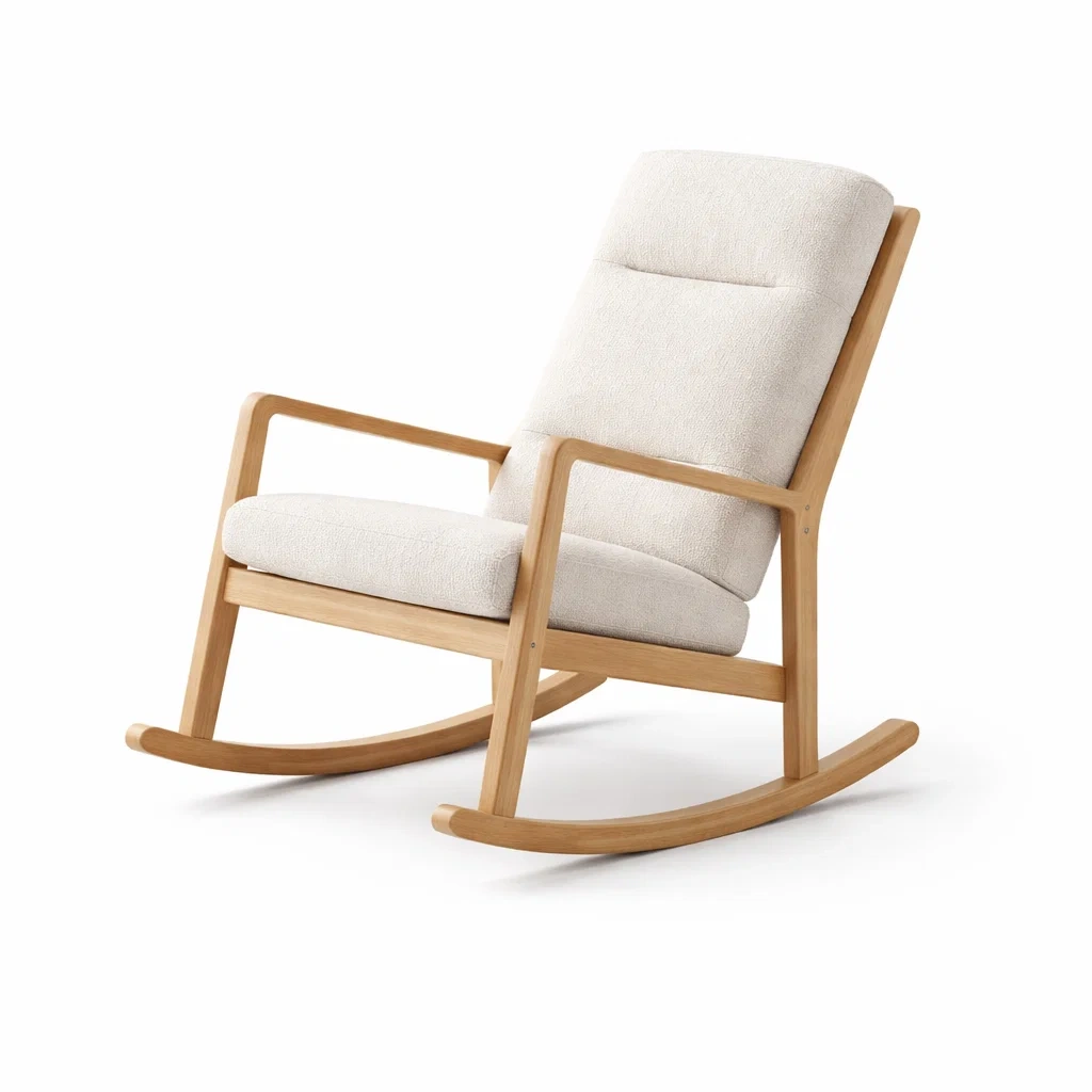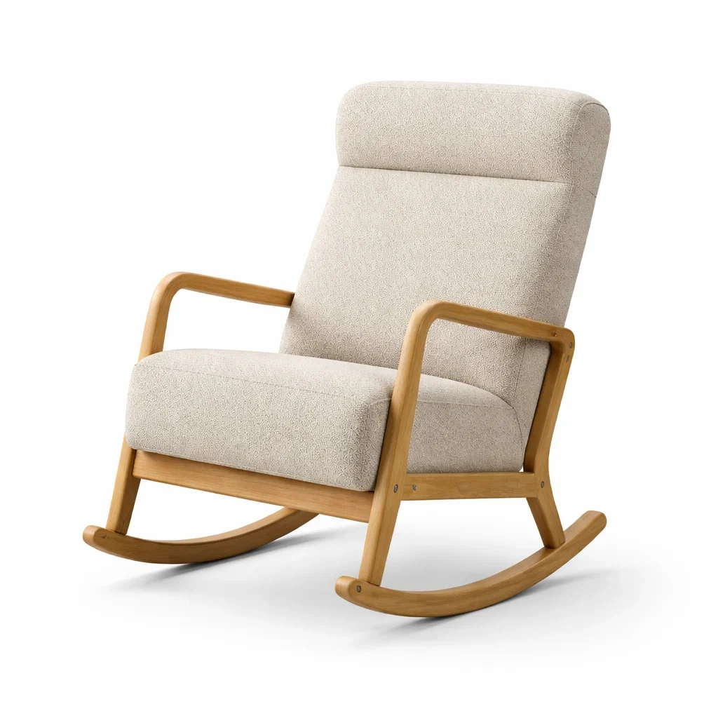 Sedia a dondolo in Tessuto Bouclé con Struttura in Legno Massello