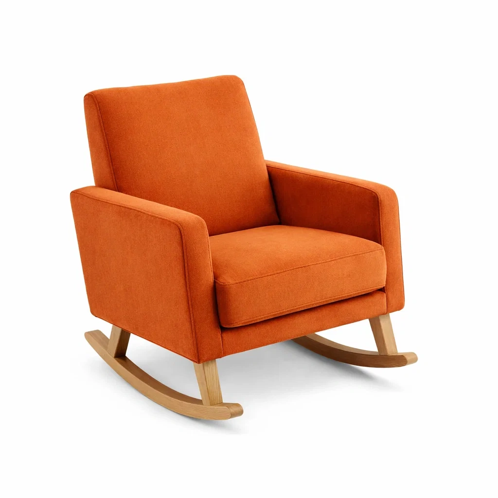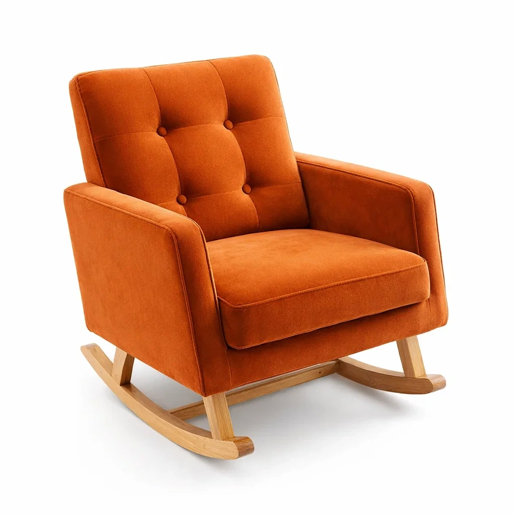 Sedia a dondolo in Velluto Arancione con Struttura in Legno