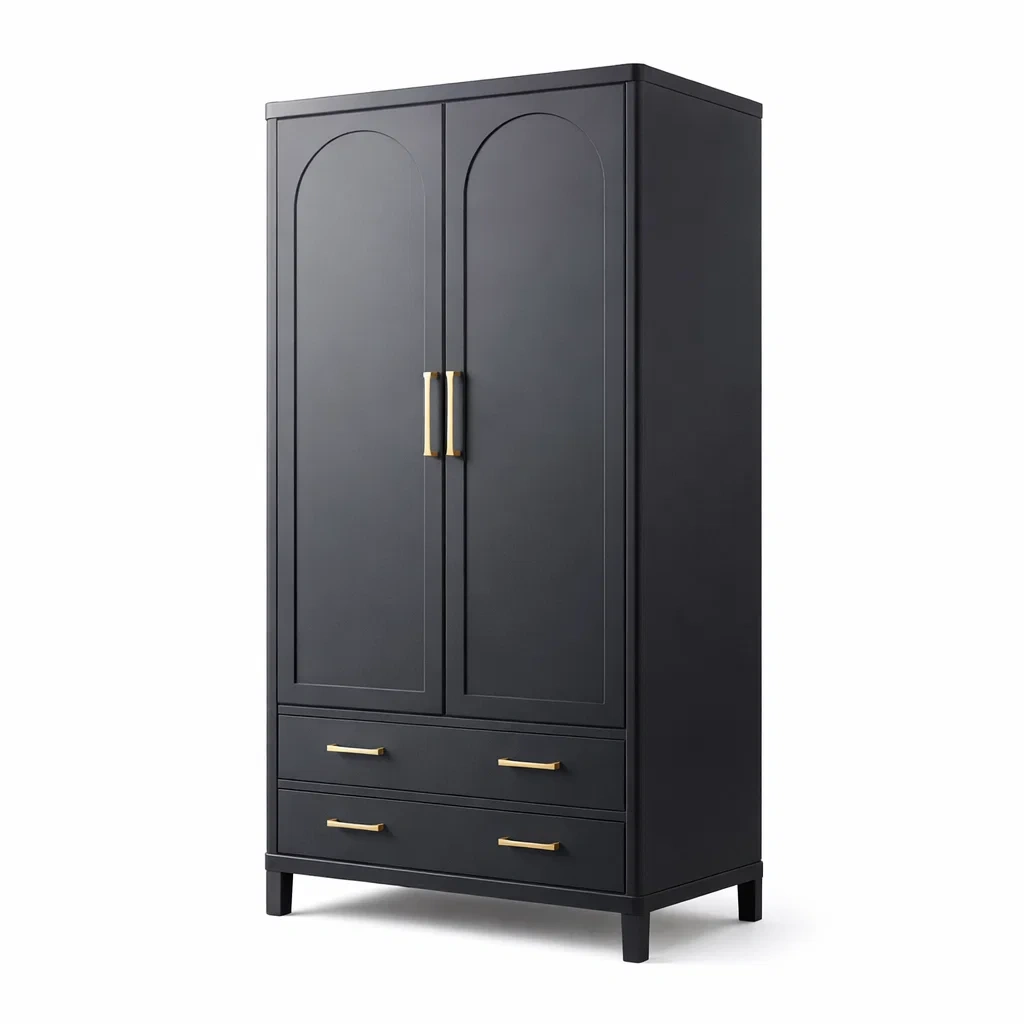 Armadio in Legno Nero con Doppio Cassetto e Maniglie Dorate